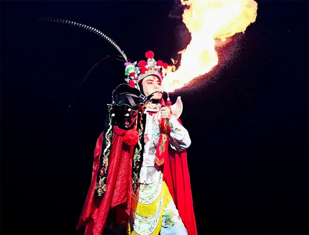 邹丹鸿说,本次演出主要聚焦于传统戏曲表演“四功”(唱、念、做、打)中的“做”和“打”元素。通过将戏曲长水袖的优美身段和大刀下场的雄壮场面,以及川剧变脸的神奇技艺巧妙融合,呈现出独具创意的编排。
