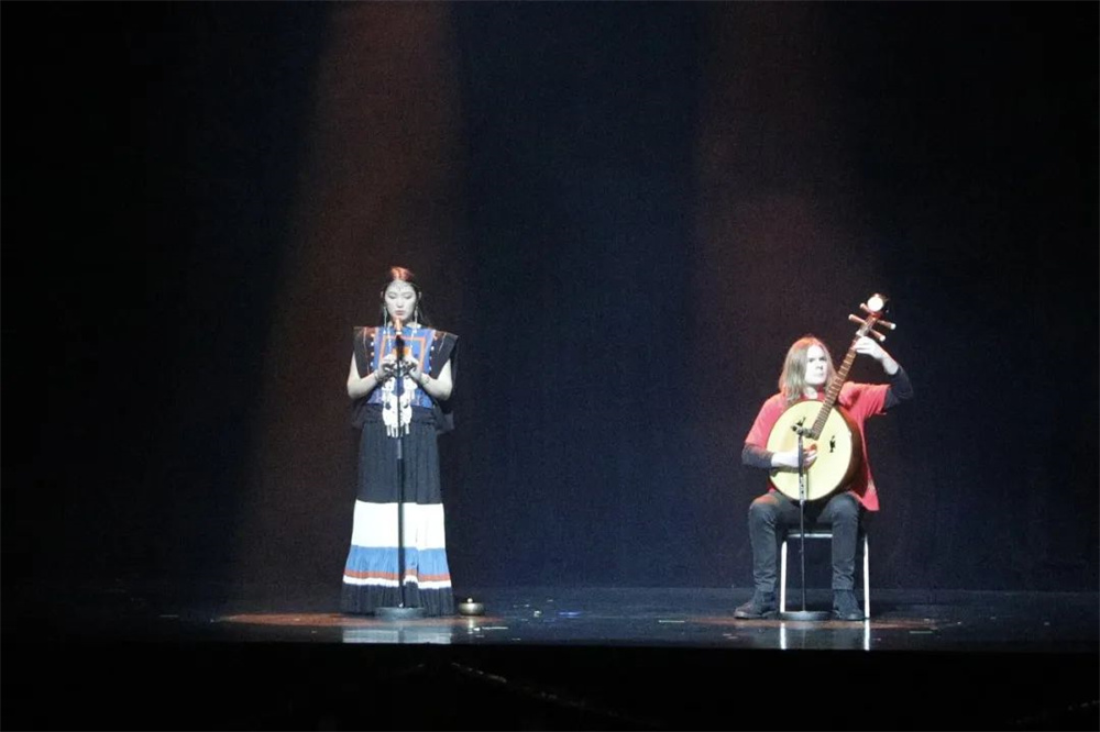 “疫情期间我参加过学联春晚的网络录制,今天完全是现场直播,这么多中外观众,我肩上的责任很重,真的很紧张!很感谢学联春晚工作组的全体成员以及一起主持的小伙伴,他们帮我纠正了很多中文发音。今天的晚会真的让我很震撼,尤其是《鸿古尔》中的呼麦表演和原创音乐,让人身临其境,我偷偷和表演者学习了一点,不过还是差很远!”
