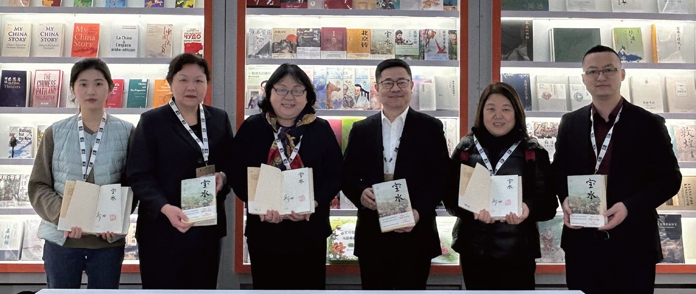 北京出版集团与英国北京联合会在2024年伦敦书展共同举办赠书仪式,捐赠2023年茅盾文学奖获奖作品《宝水》(作家签名版)。北京十月文化传媒公司总编辑胡晓舟,英国北京联合会会长李海与四名联合会代表出席本次活动,协会代表手持《宝水》在集团展台合影留念,本次所赠图书将在联合会分享并阅读,并将开展读后感征文,图书还将进入英国当地图书馆,以书会友,传播中国声音,讲好中国故事。(图片来源:主办方供图)