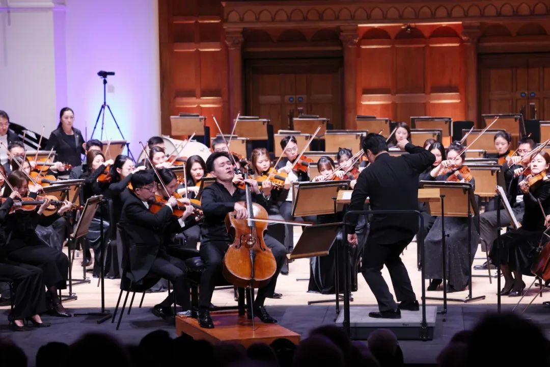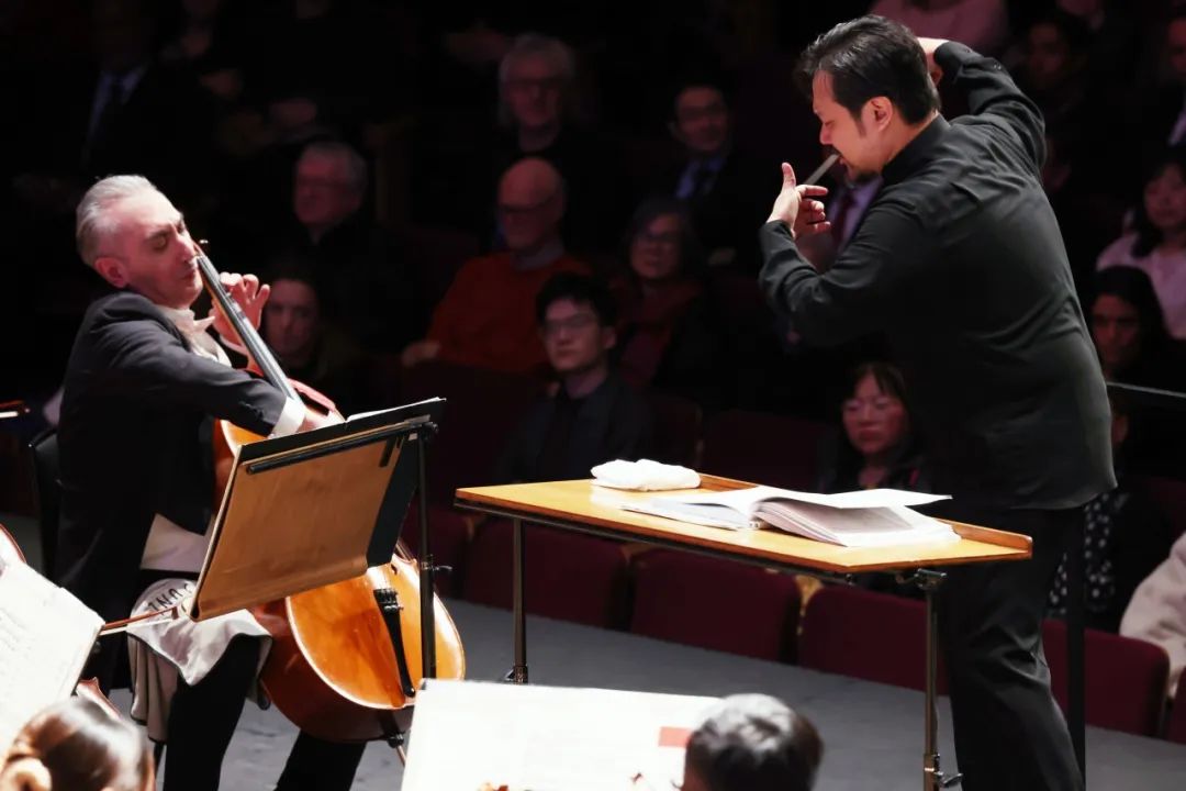 19:30,演出正式开始。首先是青年大提琴家聂佳鹏带来的《卧虎藏龙》大提琴曲,包括《卧虎藏龙》《永恒誓言》《南行》三个乐章。全新的大提琴协奏曲《卧虎藏龙》原是华人音乐家谭盾受伦敦爱乐乐团委约,根据其同名奥斯卡最佳原创电影音乐创作的,被媒体誉为“抒情性与戏剧性完美结合得最幽雅的音诗”,浓缩延续了电影的主要情节场景和那些令人难以忘怀的动人乐段,再现了中国武侠文化的精髓和哲意,具有浓郁的中国文化精神和特色。据介绍,为了深圳交响乐团此次英伦巡演,谭盾特地对作品进行了再次打磨。聂佳鹏以精湛的演奏惊艳四座。