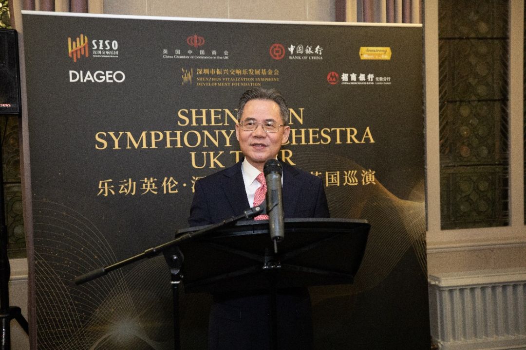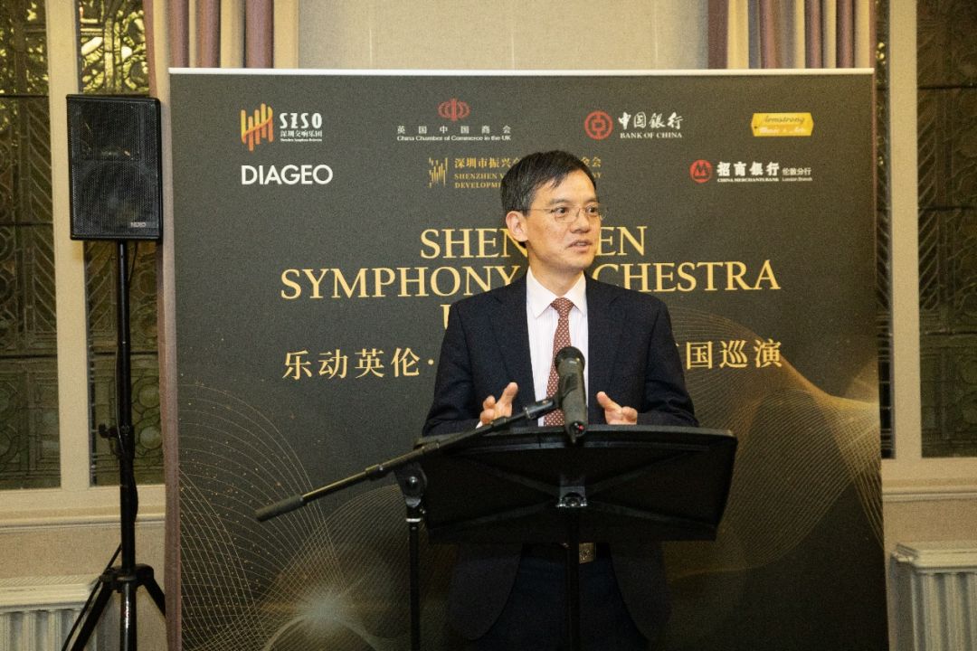 郑泽光大使在致辞中对深圳交响乐团首次来英巡演表示祝贺,向支持此次巡演的中英人士和机构表示感谢。他介绍了刚刚结束的中国“两会”主要成果。表示“两会”提出加快发展新质生产力,以科技创新引领产业创新,全面深化改革开放,进一步促进中外人文交流。强调中国坚持以中国式现代化全面推进强国建设、民族复兴,全面推进高质量发展,这将为中英务实合作和文化艺术领域交流带来更多新机遇。希望中英文化艺术界加强交往与合作,为增进两国人民友好注入新的活力。