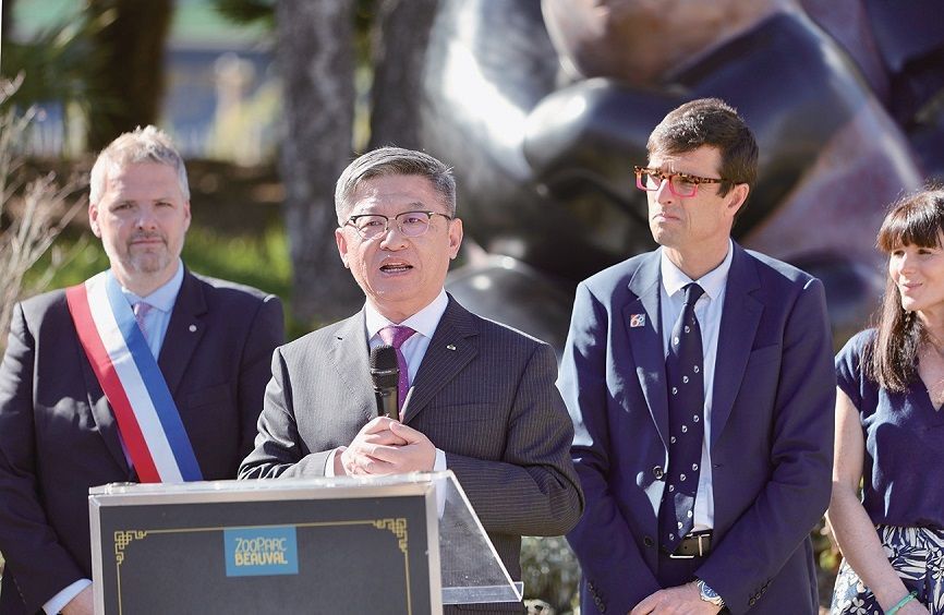 【本报讯】2024年3月22日,中国驻法国大使馆临时代办陈栋夫妇出席法国博瓦勒动物园大熊猫铜雕揭幕仪式,使馆郭业凌参赞等陪同。卢瓦尔-谢尔省省长代表、副省长伊吉宁-比耶,国民议会议员楚多,参议员贝吕罗、皮莱费尔,前法国外交部秘书长、前驻华大使顾山,雕塑家巴松皮埃尔,动物园园长德洛尔以及当地各界人士数百人共同出席活动。