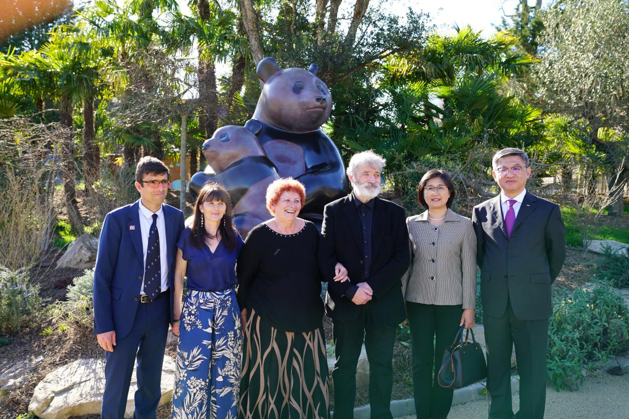 陈栋代办夫妇同德洛尔园长、雕塑家巴松皮埃尔等合影。(图片来源:中国驻法国大使馆网站)