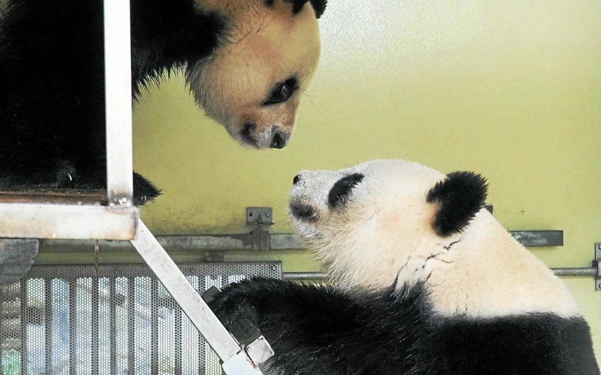旅法大熊猫“圆仔”和“欢欢”。(图片来源:法新社)