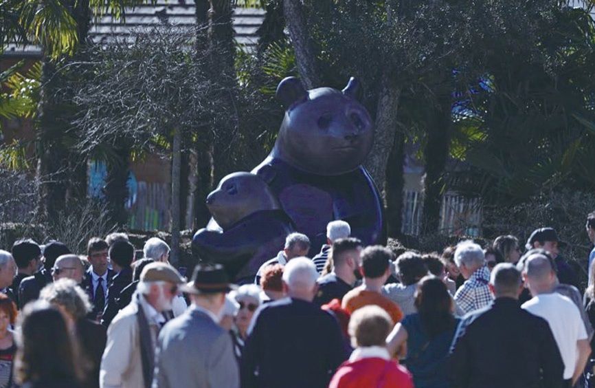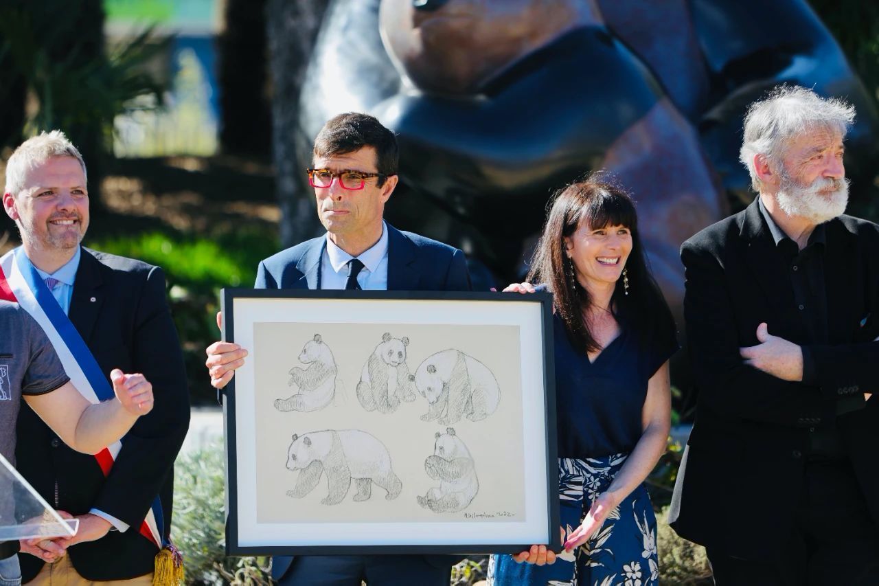 2017年8月,旅法大熊猫“欢欢”在博瓦勒动物园产下雄性大熊猫幼崽“圆梦”,成为首只在法国出生的大熊猫。根据中法双方有关协议,“圆梦”已于2023年7月回国。此次揭幕的雕塑名为《“圆梦”:圆一个梦想》,以“圆梦”为原型创作,造型为“圆梦”坐在母亲怀中望向远方。雕塑历时近2年完成,青铜材质,高2.5米,重约1吨,坐落于动物园主入口处,一经揭幕即吸引大批到动物园游玩的观众驻足合影。
