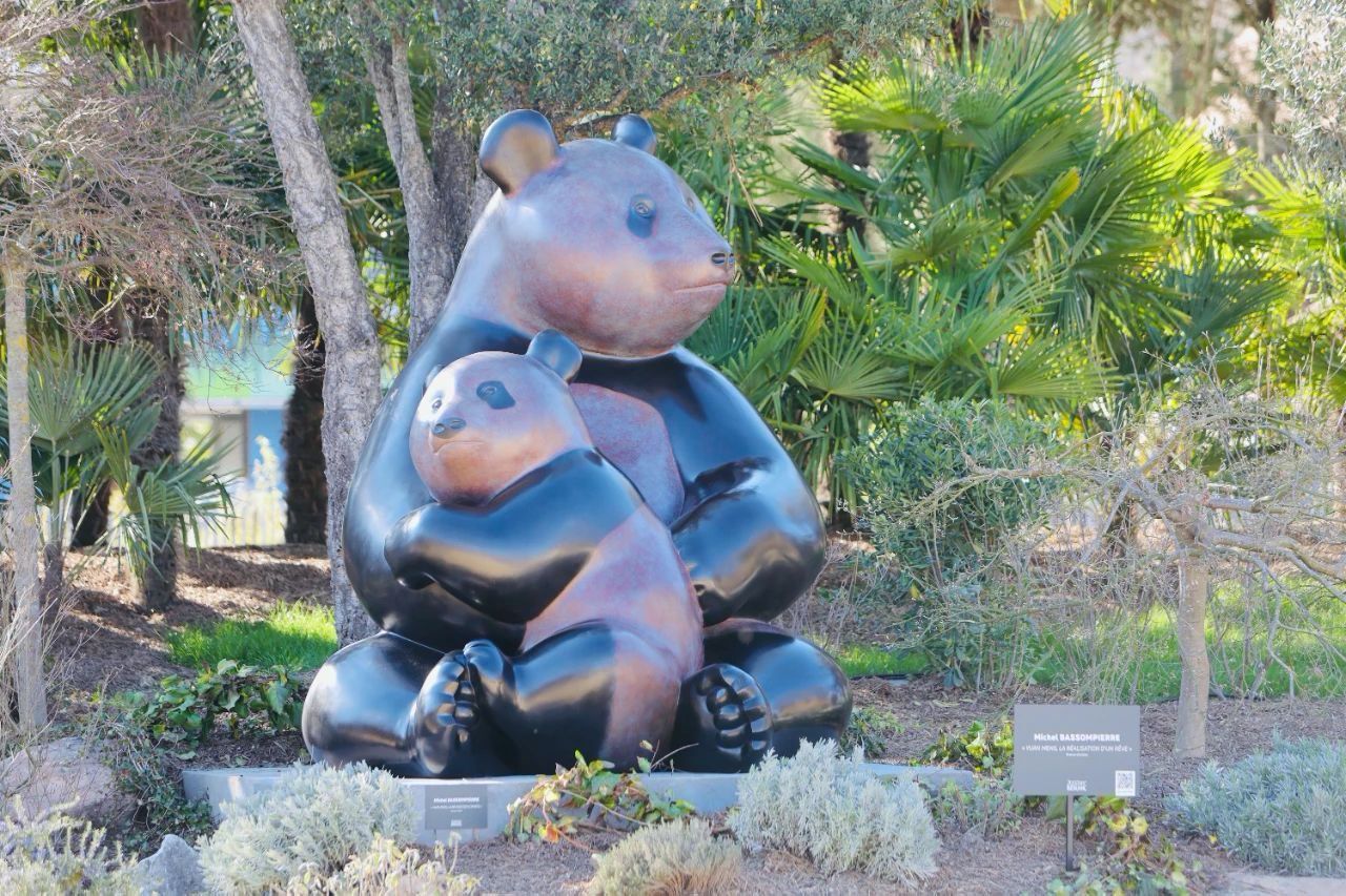 大熊猫雕塑:大熊猫母亲“欢欢”抱着儿子“圆梦”。(图片来源:欧洲时报记者马行建 摄)