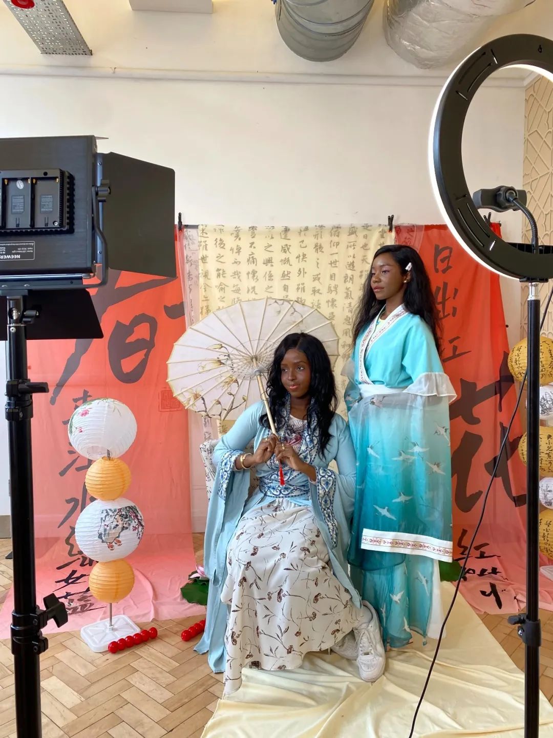 活动现场的另一边,华服来潮品牌IP的登场,为中华传统服饰文化的绚丽展示增添光彩夺目之笔,为中英文化交流注入源源不断的活力。其博物馆主题定制款汉服,设计独具匠心,工艺精湛绝伦,面料纹样别出心裁。其中,宋制的“花中光影”、晋制的“青色烟雨”及“仙霞蔷韵”等款式,更是让现场嘉宾们心动不已,纷纷身着华服,拍照留念,亲身感受中原文化的魅力。