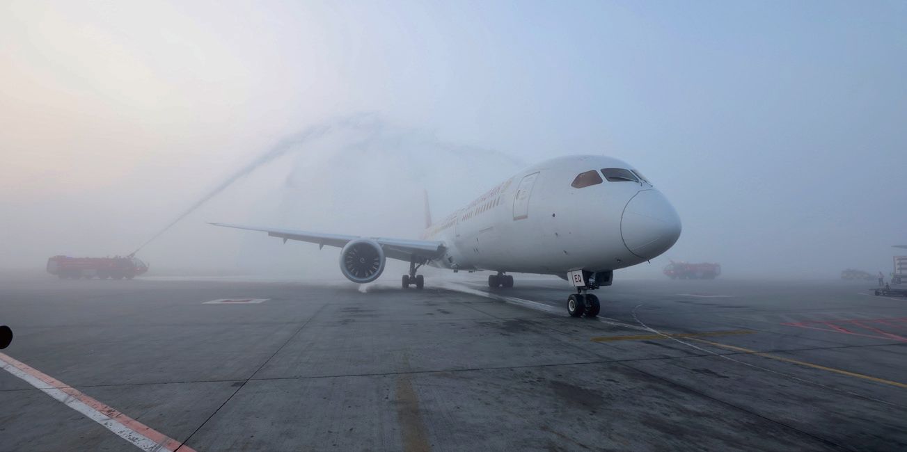 此次吉祥航空HO1657上海浦东至雅典直飞航班,由备受旅客喜爱的“绚彩花瓣”彩绘787梦想客机执飞。航班于4月2日01:55从上海浦东国际机场起飞,搭载约300名旅客,经近12小时飞行,于当地时间4月2日约08:30顺利飞抵雅典国际机场,并受到希腊方面以航空最高礼遇“水门”迎接。