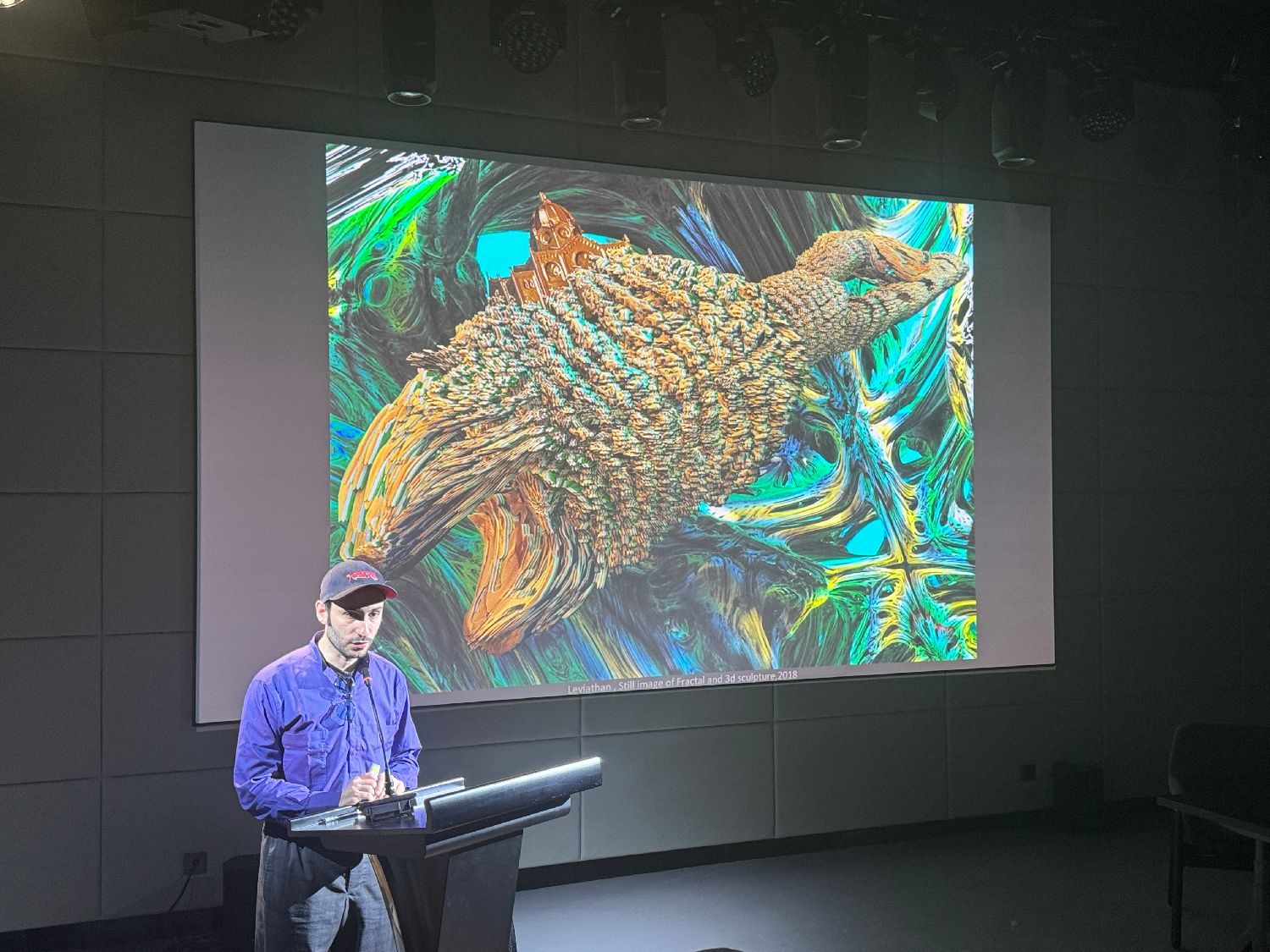 4月14日,法国巴黎艺术学院讲师大卫·拜尔比分享其AI创作经历与作品。(图片来源:中新社)