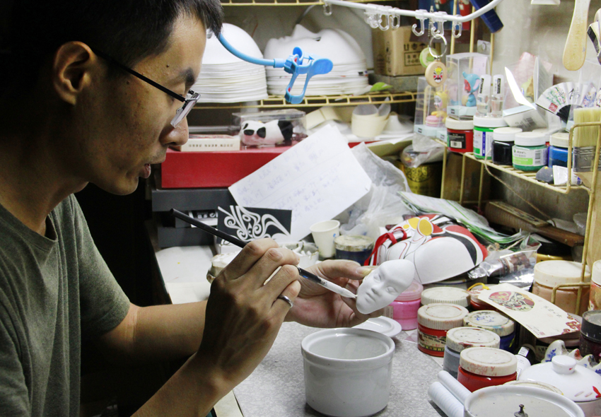 “画脸谱,最重要的是把整个人物的神韵画出来。”郭石刚介绍,因为工艺脸谱不同于舞台脸谱,舞台上可以通过表演者的表情、动作来变现喜怒哀乐和形色变化,但在脸谱画里,需要用毛笔的画工来表现人物的鲜活形象。