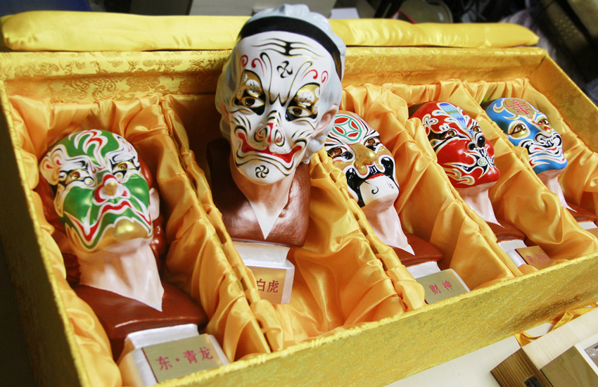 “还有这套伏尔泰”,说着话,郭石刚打开一套盒子,里面五个不同妆容的“伏尔泰”呈现在记者面前。“中间这个造型是财神,其余四个分别是象征四个方位的青龙白虎朱雀玄武,很多朋友在网上看到我的这套作品都觉得特别震撼。”