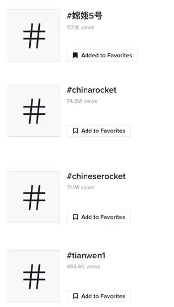 其实在此之前,中国航天的关注度一直很高,仅在Tiktok上,就有许多网民自发科普并传播中国航天事业各项成绩,中国航天相关的话题词条阅读量超过1.45亿。“嫦娥”升空、“天和”飞天、航天员太空“吃播”、空间站里的“牛娃娃”不仅是中国网民关注的对象,也成为了全球网民的关注热点。