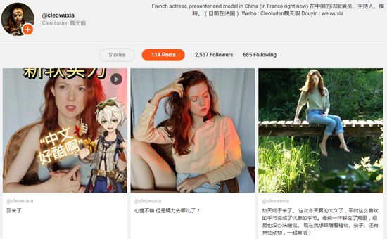 26岁的Cleo Luden(魏无瑕)是一名在中国工作的法国女孩,就在INS、抖音和微博上分享生活法中文化差异的故事。