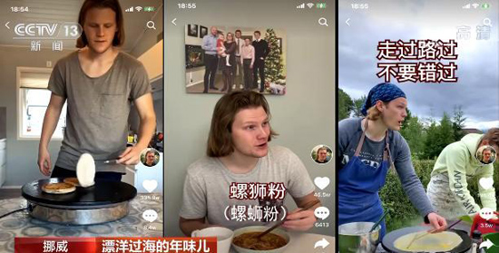 “在中国呆久后的老外回国日常”系列是“老外克里斯”制作的一系列跟中国美食、中国文化有关的短视频。视频里,克里斯的家人经常会因为文化差异,闹出“小笑话”。克里斯说,“我经常会给家人做一些中餐。每次我给他们做一些他们觉得很奇怪的东西时,他们也觉得很有意思,观众也比较喜欢。中国有句老话叫做’民以食为天‘,美食是中国文化一个很重要的部分。”