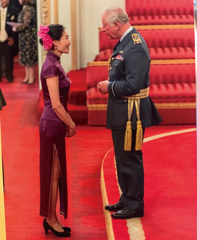第一次是在近20年前了,2003年7月10日女王到访特尔福德,我受邀在特尔福德国际会展中心为女王表演,并接受女王的会见。那时去见女王的规定很严格,不准带相机手机,不准送礼物,不准和女王握手。当时公司听说我被邀请为女王表演,还特准我带薪休假一天,同事们也很热心地教我见女王的礼仪。第一次受邀人数不多,我们表演完毕,女王走向我们站的地方,就停在了我面前,脸上笑容满面,打量着我的表演着装,能感受到她对我们中国民族服装的喜爱。当时完全没想到女王会跟我说话、寒暄,脑子一下懵了,慌乱中记得行了屈膝礼、回答时也加上了“YourMajesty”,还好没有失礼。她和蔼可亲,说话很细声但是相当有气场。可能是被我身上穿的中国民族服装吸引,女王就只跟我说了话,旁边其他的表演者和英国人都觉得我很幸运。不过因为不准带相机,没有留下照片,但是美好的记忆并没有随着岁月流逝而淡去。