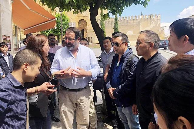 卡尔莫纳市长胡安·阿维拉安慰遇害者家属。(图片来源:西班牙青田同乡会秘书长林科提供)
