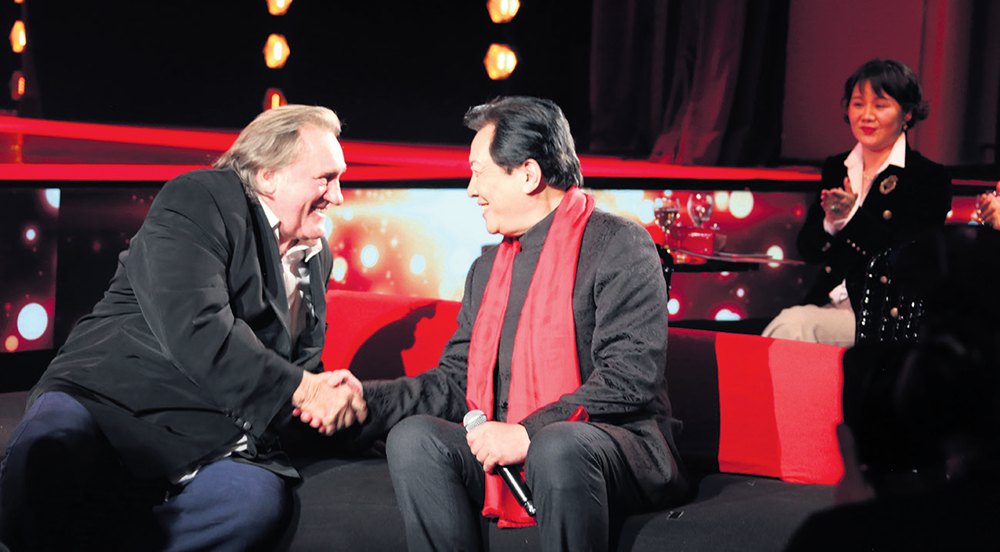 图为德帕迪约与唐国强讲述中法电影交流。