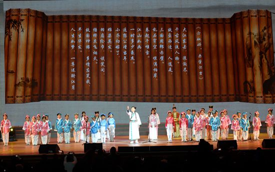 图为首届全球华语朗诵大赛。(图片来源:中新社)