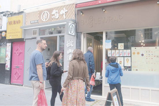 2020年7月4日,沉寂已久的英格兰迎来解封。图为在一家甜品店门外排队等候的西方顾客们。(图片来源:欧洲时报记者田皓雪子 摄)