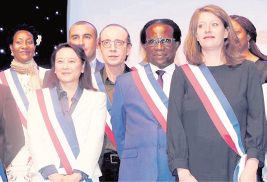 2020年3月,来自武汉的原留法学生田玲(前排左一)当选为巴黎北郊欧拜赫维利埃市的副市长。(图片来源:欧洲时报记者孔帆 摄)