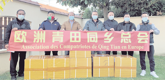 2020年11月5日,欧洲青田同乡总会向在法侨胞援送中药、口罩等抗疫物资。(图片来源:欧洲青田同乡总会供图)