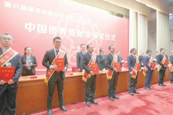 2020年12月1日,中国侨联“第八届新侨创新创业成果交流活动”在北京举行,125名侨领获得第八届“中国侨界贡献奖”。图为颁奖现场。(图片来源:中新社)