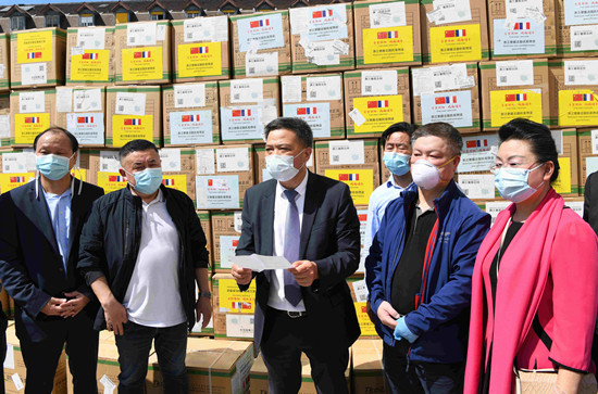 5月21日,旅法侨团向法国巴黎公立医院集团捐赠20万只防护口罩,帮助法国医疗系统抗击新冠肺炎疫情。(图片来源:中新社)