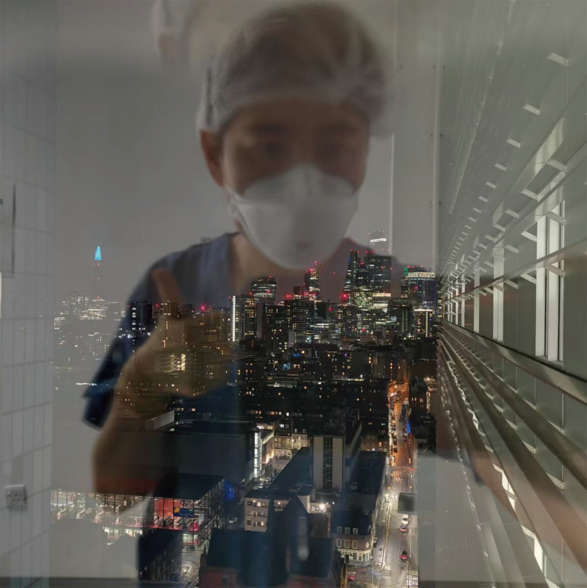 2021年,希望一切都会好起来。我和美丽的伦敦夜景,sending love to you from the15th floor of RLH Covid ICU。”