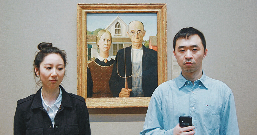Lumi(左)和Cypher(右)在博物馆模仿《美国式哥特》拍下的照片,这也是他们账号名称的由来。