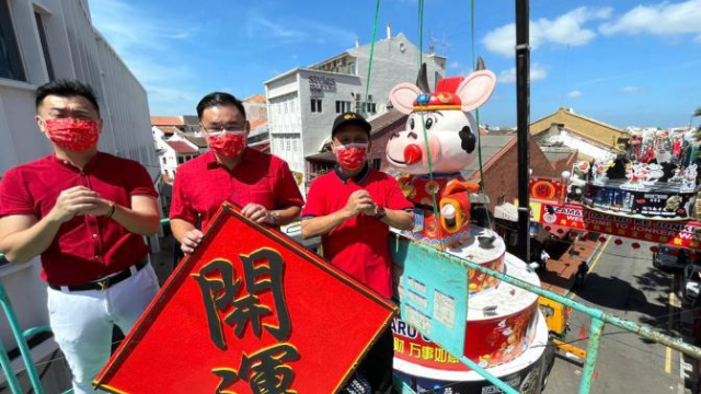配合农历辛丑年的到来,马六甲鸡场街文化坊于6日在鸡场街树立起今年的吉祥物“开运牛”,成为这一世界文化遗产地今年欢庆春节的亮点。