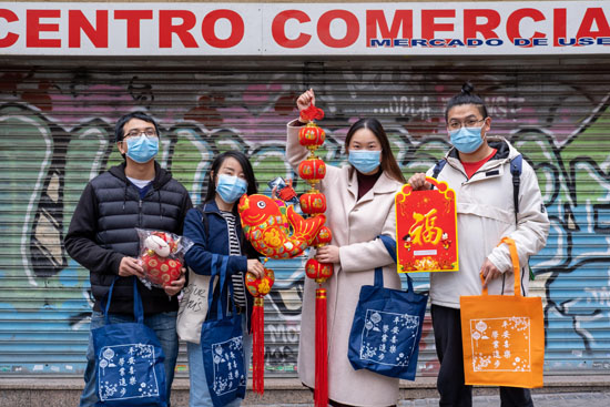 2月6日,中国驻西班牙大使馆向在西中国留学生发放包含防疫用品、春节饰品和慰问信等物品的“春节包”。