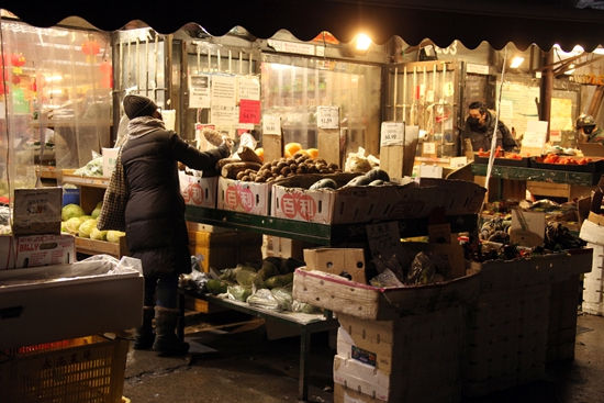 当地时间2月12日,辛丑牛年正月初一晚,在加拿大多伦多中区唐人街,顾客在一家华人超市选购蔬菜。因应新冠疫情,目前当地仍在实施一系列封禁措施,华埠生意受到很大影响。(图片来源:中新社)