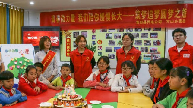 方山乡学校老师为留守儿童过集体生日。(图片来源:方山乡人民政府供图)