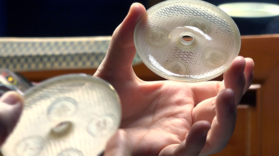 多宝阁前,杨晓雅把一件金丝点缀、薄透如纸上面布满气孔的金玉香囊举在灯光前,光线透过无数细孔洒向桌面,薄透的香囊也仿佛变得半透明。“别看这件作品不大,可它承载了所有金镶玉制作的高难技艺。”