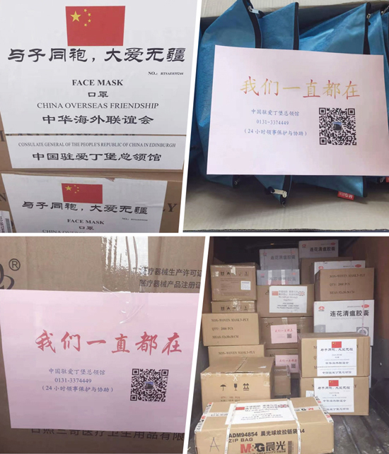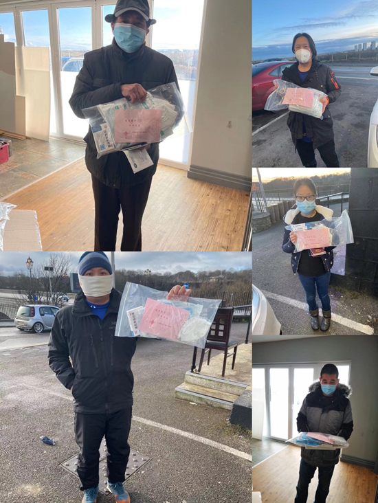 2020年04月13日,华人联合会成员往返5小时将防疫物资从爱丁堡总领馆带回阿伯丁后,阿伯丁华人联合会组织并向当地华人华侨进行“健康包”发放。在疫情情况最严峻的时刻,阿伯丁华人志愿者们身先力行、齐上阵,确保了阿伯丁华人联合会“健康包”发放工作扎实有序高效开展。