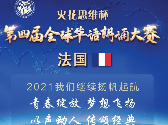 由中国华文教育基金会主办,北京教育学会朗诵教育专业委员会、曹灿艺术学校承办,火花思维赞助的第四届全球华语朗诵大赛已于2021年3月正式启动。受疫情影响,赛事将在线上进行。本届法国地区的比赛由法国华文教育协会、欧洲时报文化传媒集团承办,得到了中国驻法国大使馆的支持。来自法国本土及圭亚那和马提尼克两个海外省在内的近30个华教组织或华校参与赛事,覆盖逾万名学生。