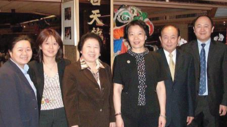 (自左至右)陈顺源先生的两位女儿、夫人、时任中国驻法大使赵进军夫人钱卫、陈顺源先生、陈先生的儿子陈文雄。(图片来源:本文图片均据欧洲时报)