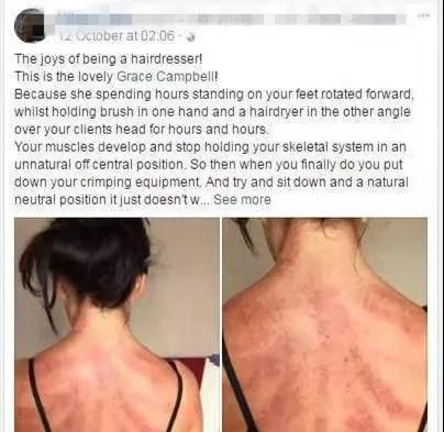 美国一名理发师每天都会用手臂从事大量的工作。她认为刮痧是她工作中的一个巨大的助力。她说:“刮痧过程有些不适,但之后却非常的舒服。”