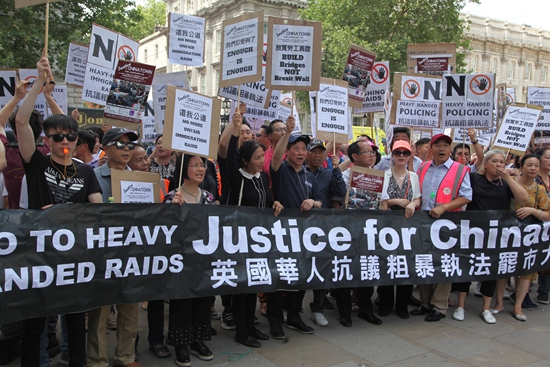 2018年7月24日,伦敦华人罢市游行抗议英移民局粗暴执法。(图片来源:中新社)