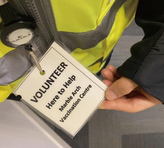 我主要负责协调秩序,指引大家排队。也会和其他志愿者沟通,人多的时候就让大家停止移动,人少的时候就可以通知门口的志愿者多往里面放人。整体的工作比较简单,但很忙碌,需要不停地和每个人说“请往这边走”,“请保持距离”等。接种点的工作人员态度都很好,时间长了会提醒我们休息一下,也会催促我们快去吃饭。午饭有三明治、沙拉、水果、还供应有咖啡和茶等等。同时工作期间也能和大家聊聊天,接触到不同的群体,也能认识其他志愿者。有的也是学生,有的是家庭主妇,也有上班族利用空闲时间进行志愿服务。大家都来自不同的国家,一起工作时也交流着彼此国家的近况,增进了文化交流和理解。一个小姐姐开始以为我是日本人,在我表明自己来自中国后,她有点惊讶,说自己做志愿活动时很少见过中国人。我想如果有更多的中国面孔加入到当地社区公共服务和志愿活动中,也许能够提升华人社群的集体形象,也能够让更多人了解真实的中国和中国人民,减少对华人群体的偏见和刻板印象。
