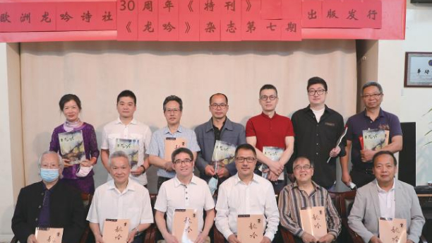 欧洲龙吟诗社作为旅法第一个文化社团,由萧良等人发起创建,诞生于1990年1月,起名“龙吟”之意是表达海外华人、侨胞诗人讴歌中华文化之心声,诗社名由著名诗人艾青题写。宗旨是联络友谊乡情,开拓国际诗坛交往,促进新、旧诗各流派的发展,培养诗坛新秀,弘扬中华文化,谱写中法友谊之歌。到2020年1月就整整30年了。30年来,欧洲龙吟诗社广泛联系团结旅法诗词爱好者,积极与中国及世界各国的诗词爱好者交流,创作成果甚丰。到2020年1月,已在《欧洲时报》刊登“龙吟诗页”334期,出版《龙吟诗词》七辑,《龙吟诗文丛书》一套(共17本),《龙吟》杂志六期。为了隆重纪念诗社成立30周年,第十五届社长团组织编辑了《龙吟》诗社三十周年纪念特刊,由于新冠疫情爆发,编辑出版工作延迟,但是编委会成员克服种种困难,最终由巴黎太平洋通出版社由去年10月出版。直到最近法国解封,文化活动得以允许举办,所以举行线下发布会。同时,因疫情耽搁的《龙吟》杂志也宣布复刊,并编辑出版了2021年第一期(总第七期)。《龙吟》是编辑原则也有所改变,并不仅限于诗词,也包括散文、文学批评、小说等其他文学样式,成为一本以诗词为主、内容丰富的文学综合期刊杂志。