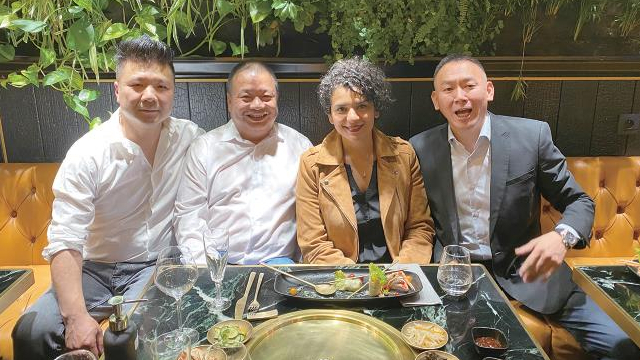 美丽城联合商会会长姜金玉、第一副会长叶文、副会长陈东晓欢迎卡泽纳夫等人的到来,并邀请他们参观了美丽城的部分商家,并在叶文的韩餐厅“江南”中举行了简短的座谈。