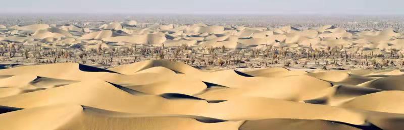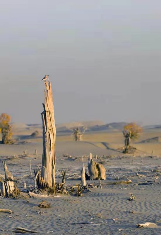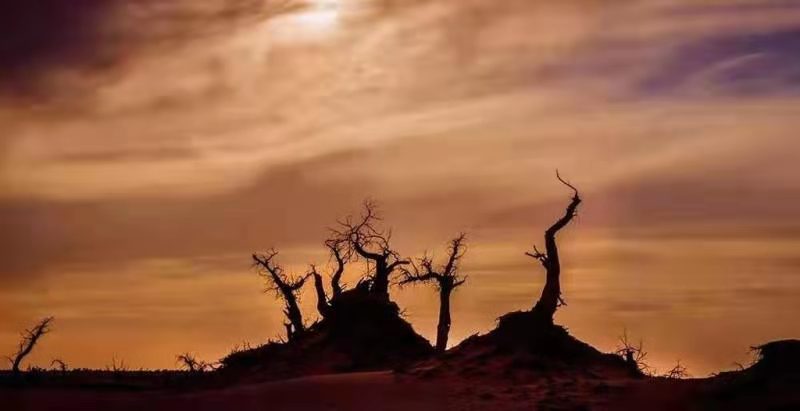我所说的“野”,不是“野蛮”的“野”,而是回归人性本真的一种“野”。东汉许慎编著的《说文解字》里说:“野,郊外也。”巴楚县的总面积比省会城市乌鲁木齐全市的行政区域还要大。这里有沙漠、戈壁、雪山、草甸、雅丹地貌、平原水库,更有世界罕见的大面积胡杨林生长区,使人有“一入林中深似海,疑心世上无甲子”之慨。很多人疑心巴楚是江南的一块飞地,作为一名“江南人”,我在心底里暗自感叹:巴楚不但有江南“野旷天低树,江清月近人”的秀美,而且有塞上“大漠孤烟直、长河落日圆”的壮美。