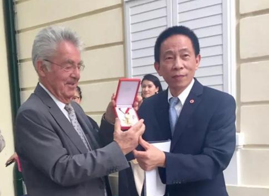 近日,张维庆被奥地利政府授予“奥地利共和国金质功勋勋章”。该勋章由奥地利联邦总统决定颁发,专门用于表彰对奥地利作出卓越贡献的人士。