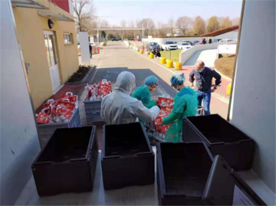 Brescia爱心志愿者送餐队为当地医院输送餐食。