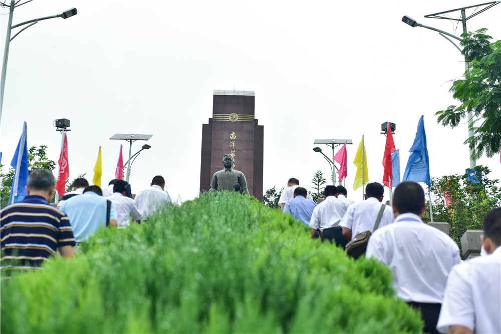 2017年7月7日,来自中国各地的南侨机工后人走到纪念碑前缅怀先烈。(图片来源:中新社)