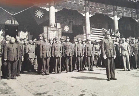 孙连仲将军在北平受降仪式上接受日军敬礼,签字,递交降书。