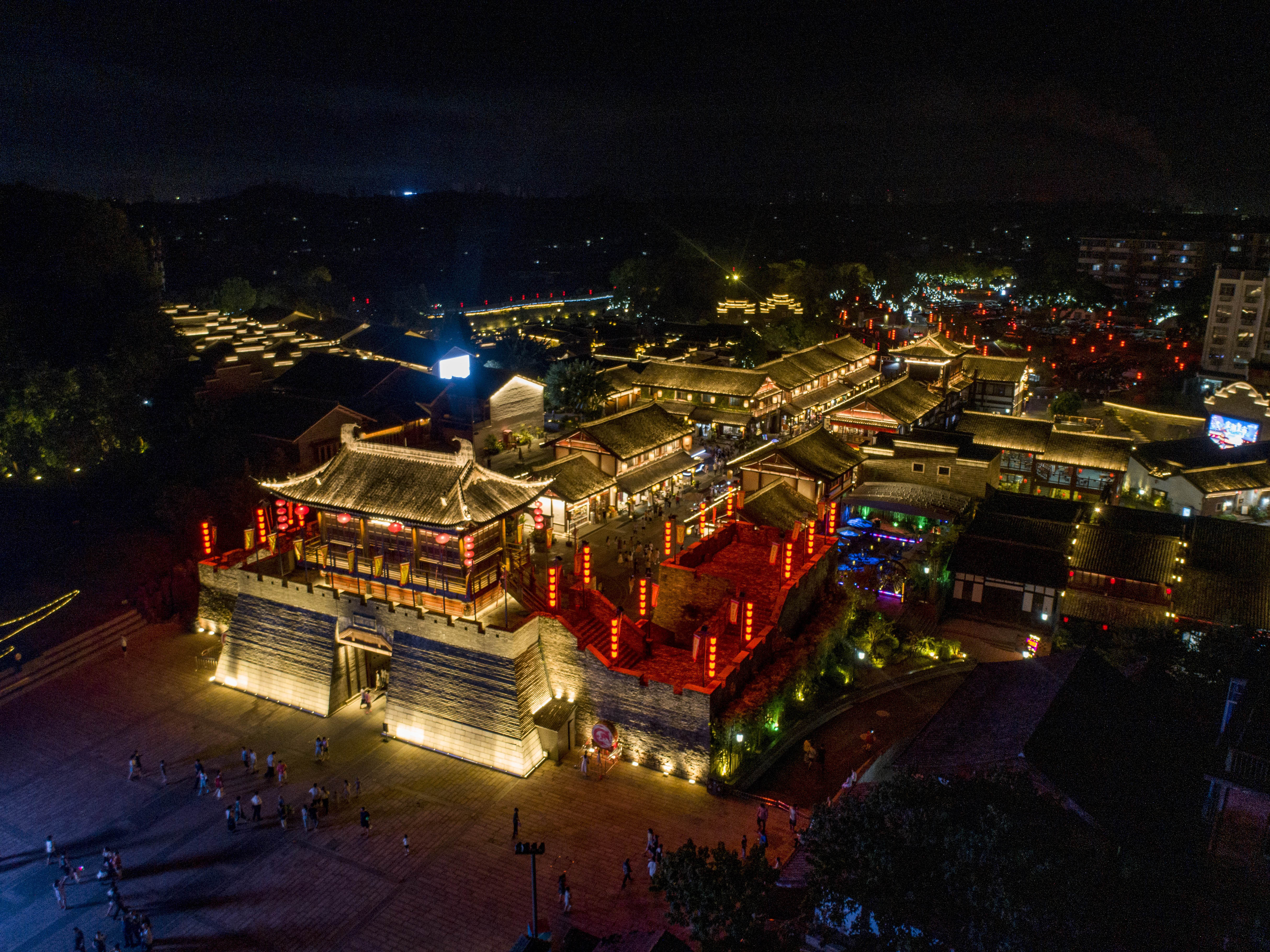 中秋圆月映照着古城,灯光投影秀与古建筑融合一体,漫步其中,不仅能够感知宋代建筑形态之妙,更能体会文化底蕴之美。