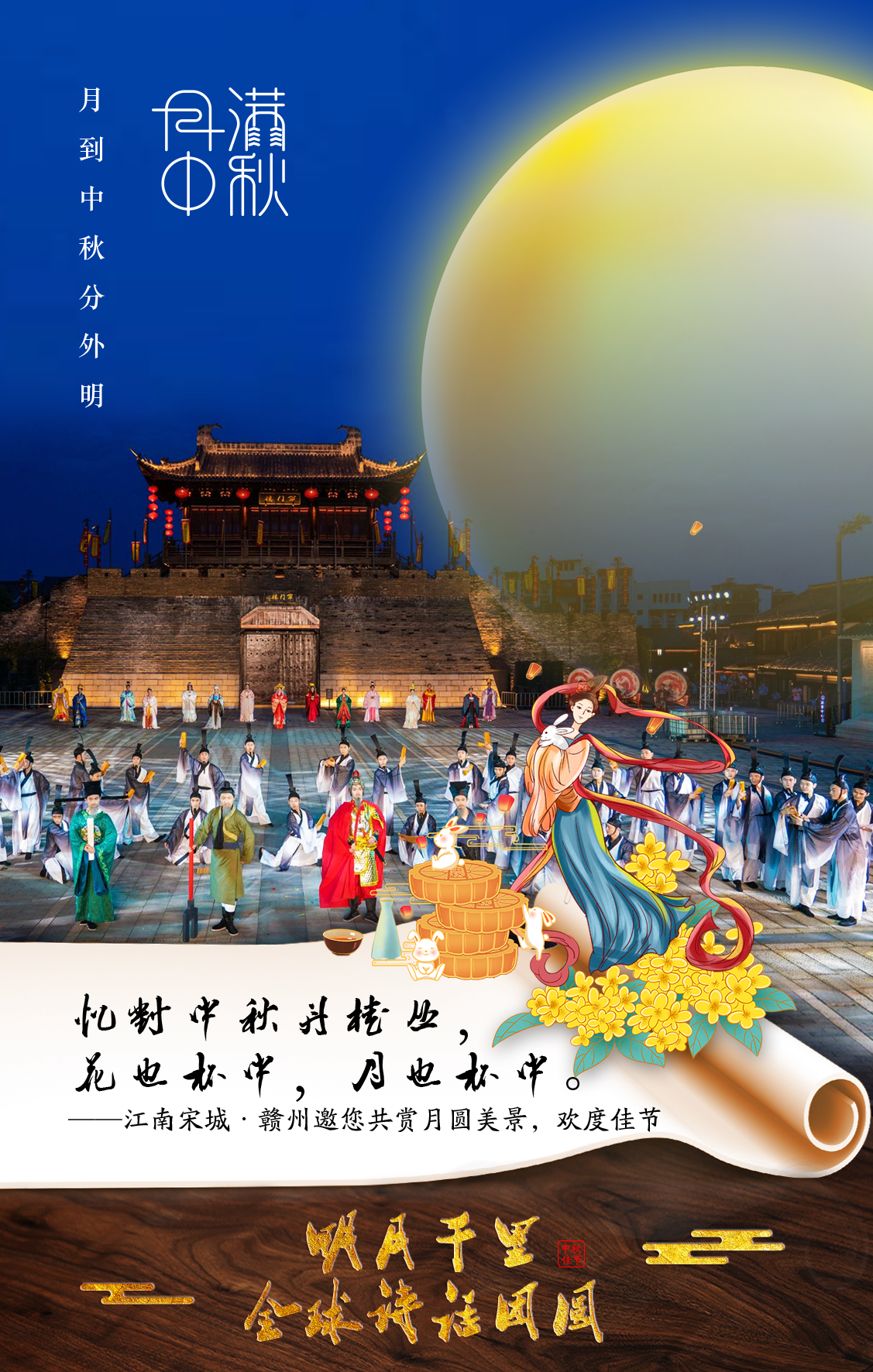 中秋期间,江西赣州江南宋城历史文化旅游区通过海内外城市大屏和新媒体平台,向全球华人及世界各地朋友送上中秋祝福,并邀请世界各地朋友走进江西赣州,走进江南宋城历史文化旅游区,体验“宋式”逍遥生活。