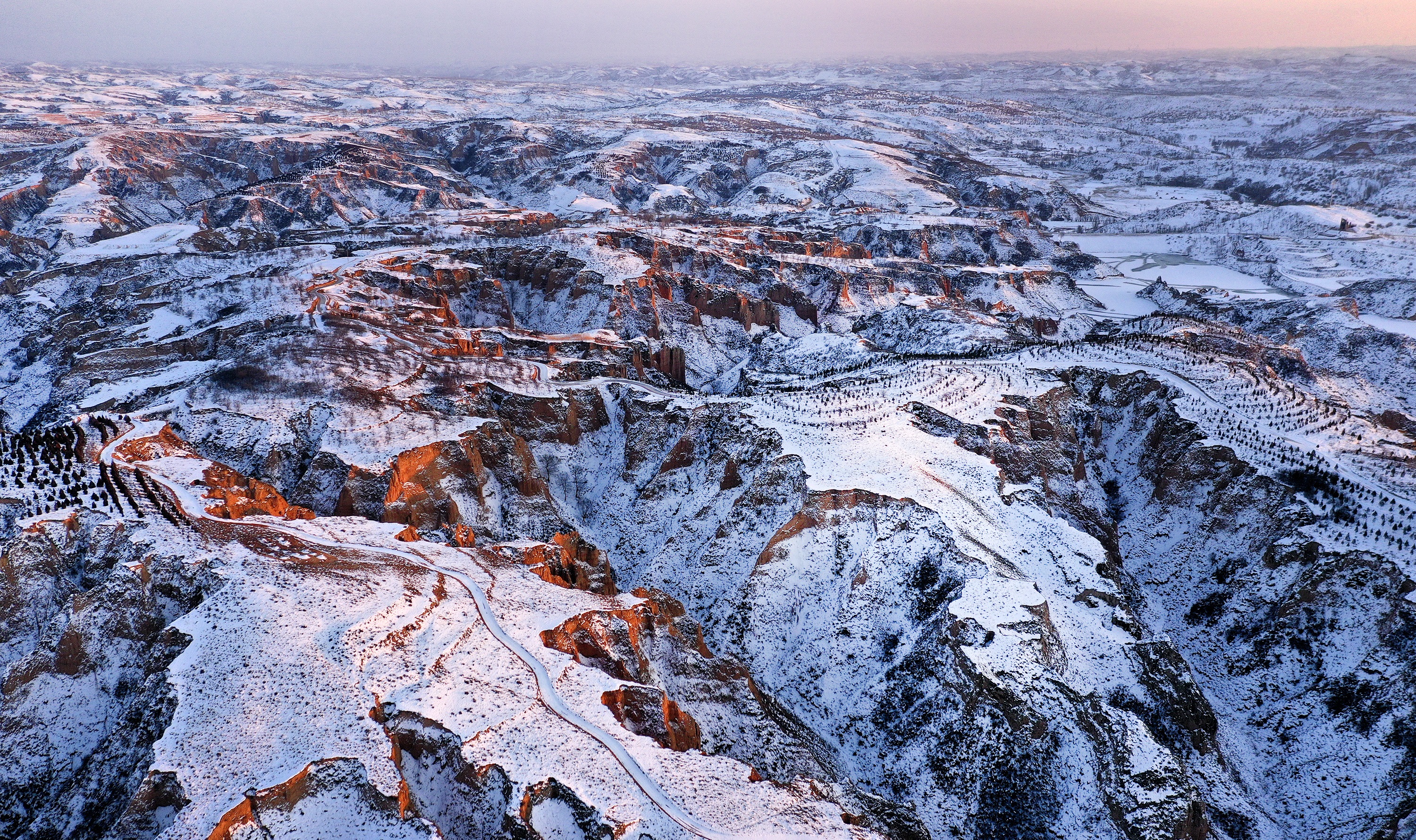 雪后初霁的黄土高原。新华社记者陶明摄